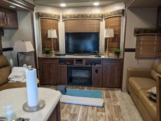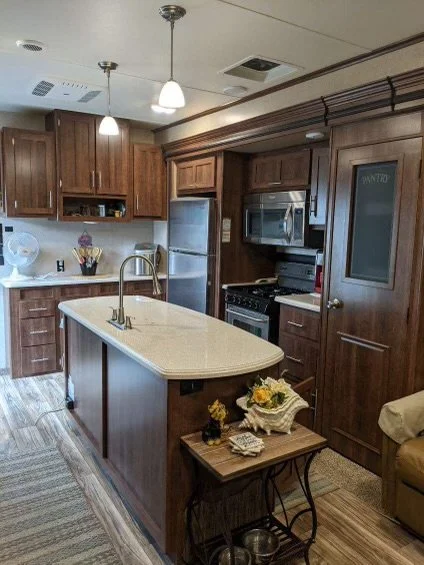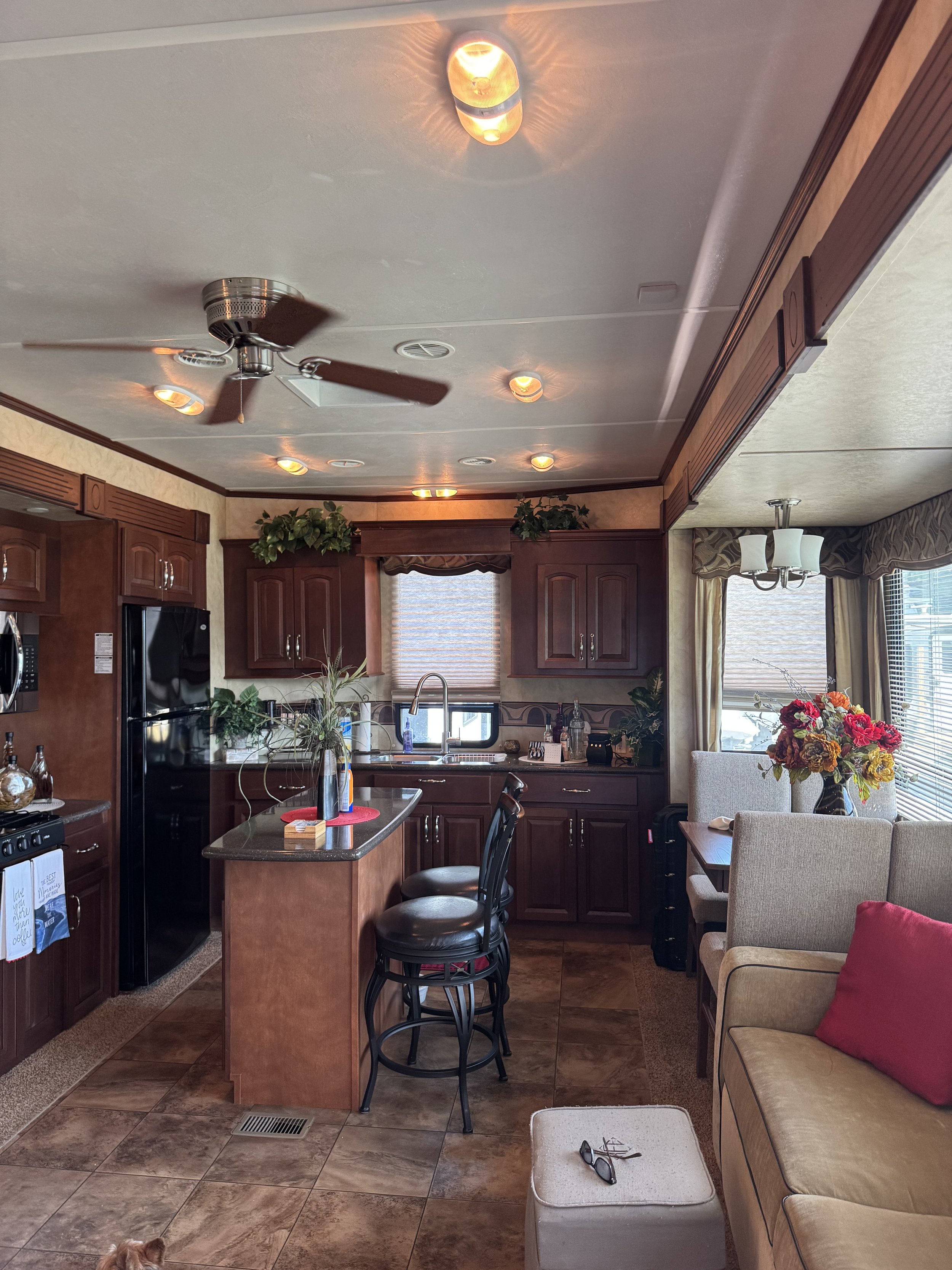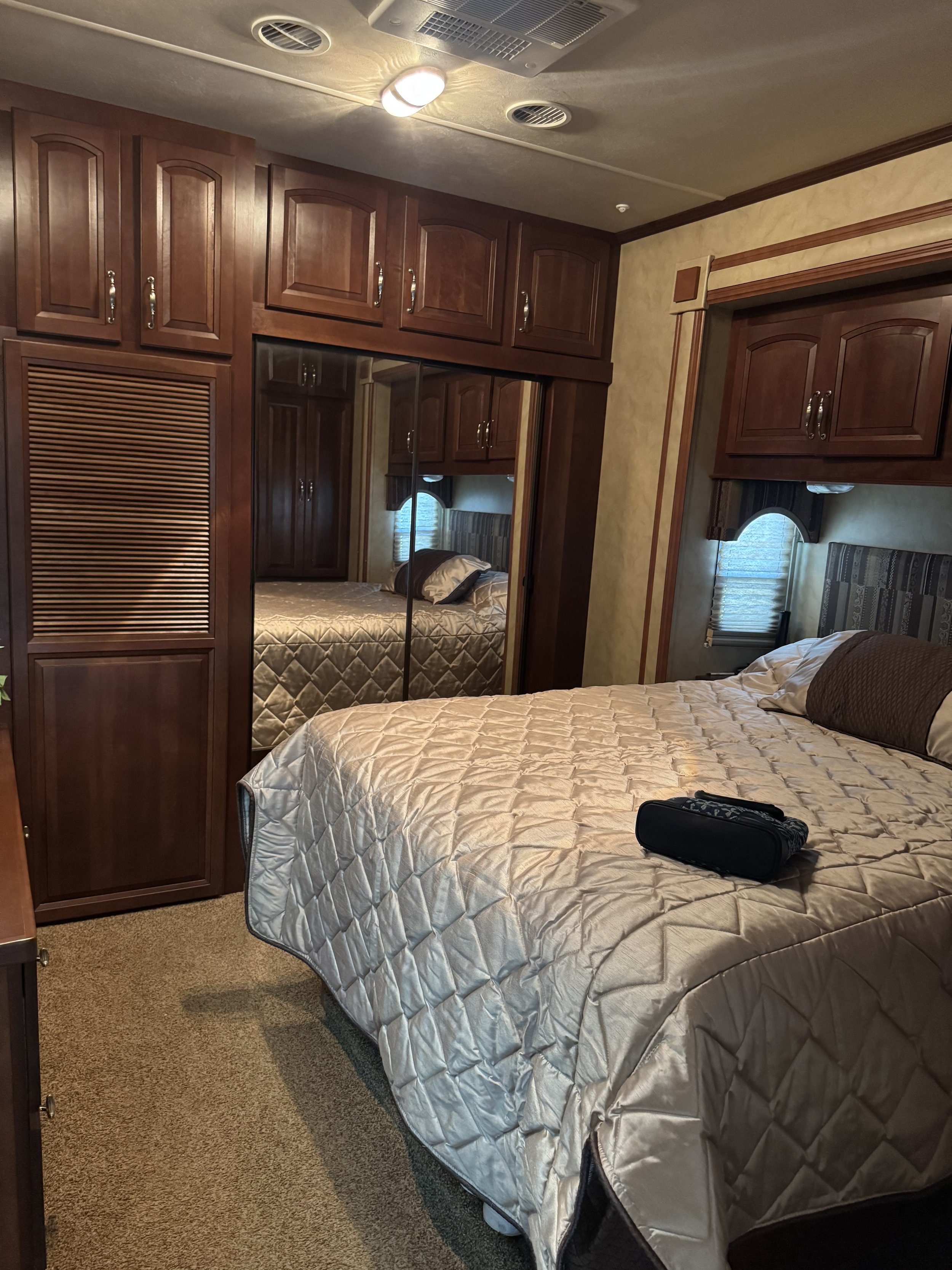 Site #212 2016 Crossroads RV Hampton Destination M-380 FD. Asking $30,000