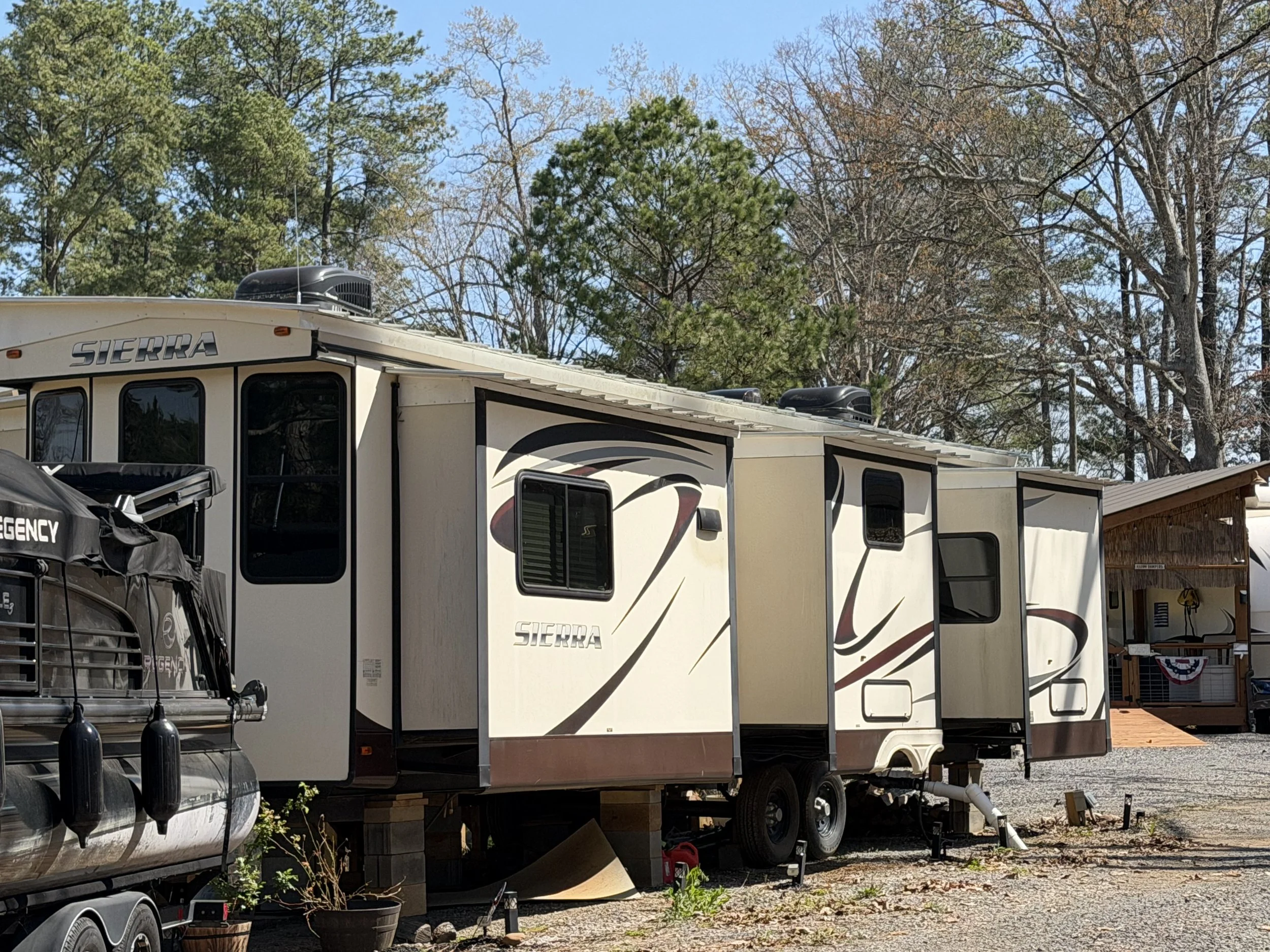 Site # 189 2022 30ft 1 slide Forrest River Cherokee Alpha Wolf 30DBH-L. Asking $32,000. Lakeview, spacious site and camper in pristine condition.
